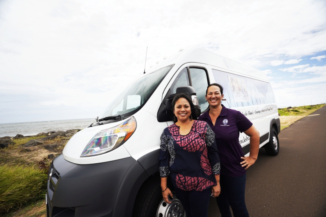 KS Regional Director for Kaua‘i and Ni‘ihau Buffy Ofisa and Support Services Manager Caroline Victorino recently took their team’s new Mobile Outreach Center out for a spin visiting ‘Ele‘ele Elementary School and Hāloalaunuiākea Early Learning Center.