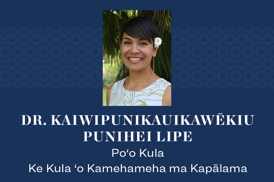 With deep gratitude for the many hands and hearts that have guided us to this moment, I write to share that Dr. Kaiwipunikauikawēkiu Punihei Lipe has been appointed as the next poʻo kula of Ke Kula ʻo Kamehameha ma Kapālama.