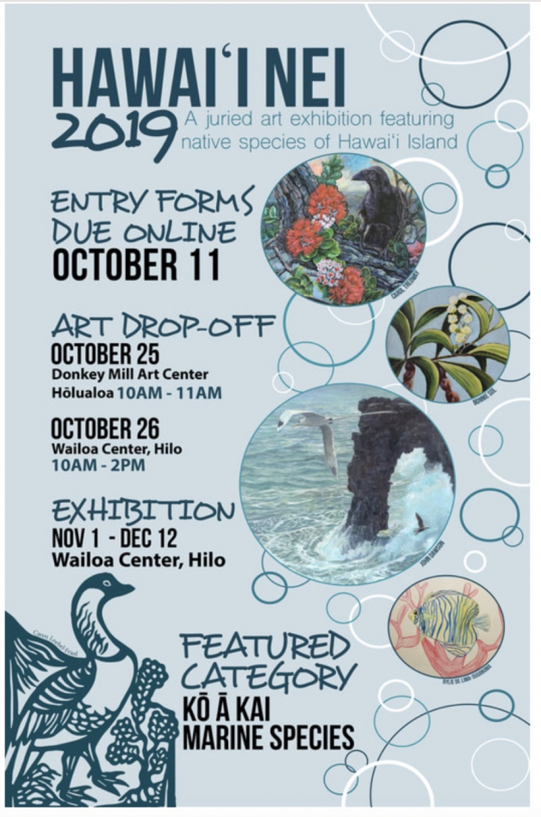 Hawaiʻi Nei 2019 is a juried art exhibition featuring native species of Hawaiʻi Island. This year’s featured category was Kō Ā Kai - Marine Species.