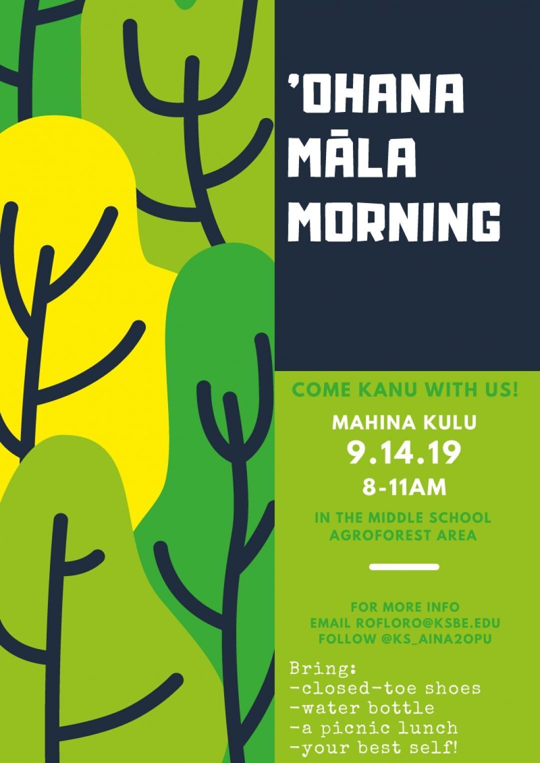 The first ever ʻOhana Māla Morning takes place this Saturday, September 14 at the middle school agroforestry area.
