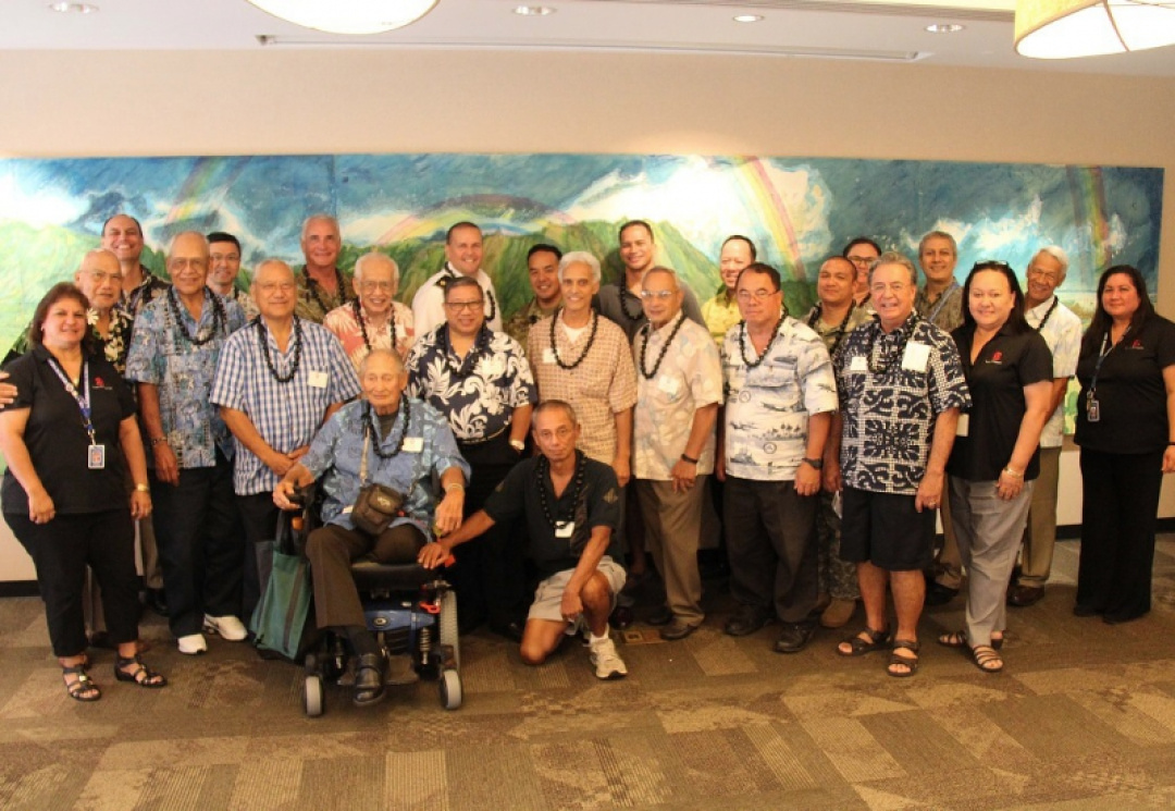 In honor of Veterans Day, the KS Alumni Relations Office recently hosted over 40 alumni veterans at a breakfast held at Kawaiaha‘o Plaza. Above, some of the veterans gather with KS and Pauahi Foundation staffers after the ‘ono meal.