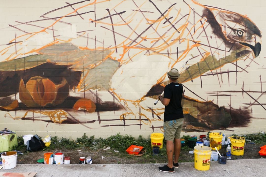 KS provides the canvas for these large-scale paintings which are uber-popular among visitors and locals. Even after the week is over, thousands flock to Our Kakaʻako to view and photograph the urban works of art.