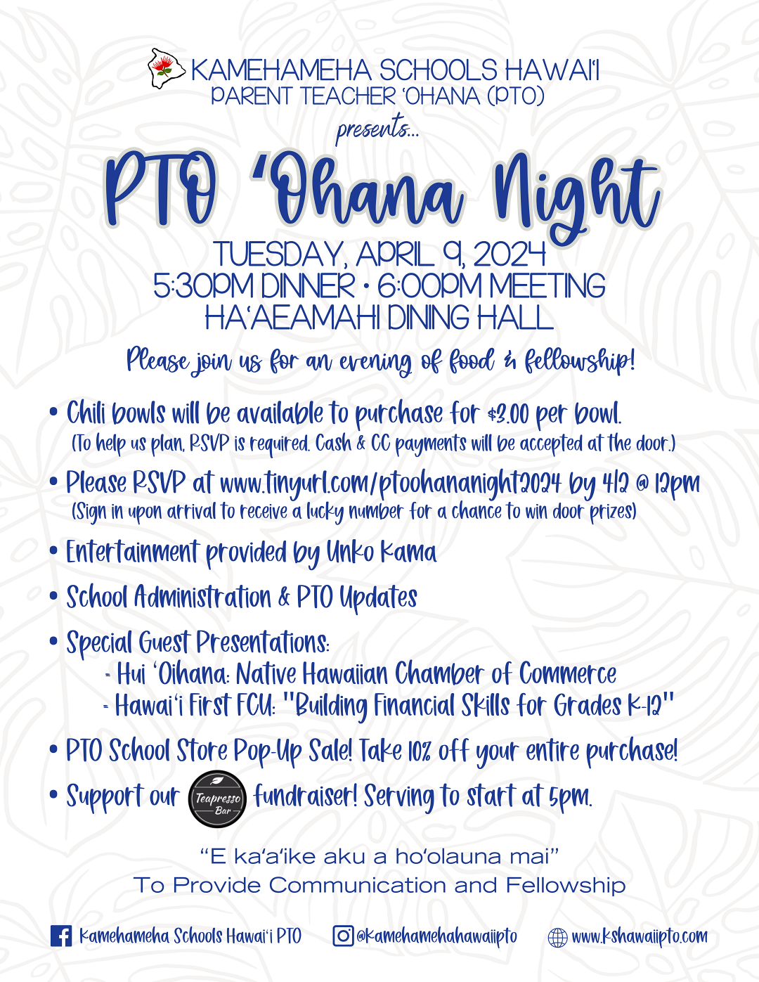 Visit KSHawaiiPTO.com or follow Kamehameha Hawaii PTO on Instagram and Facebook for additional information. We hope to see you there!