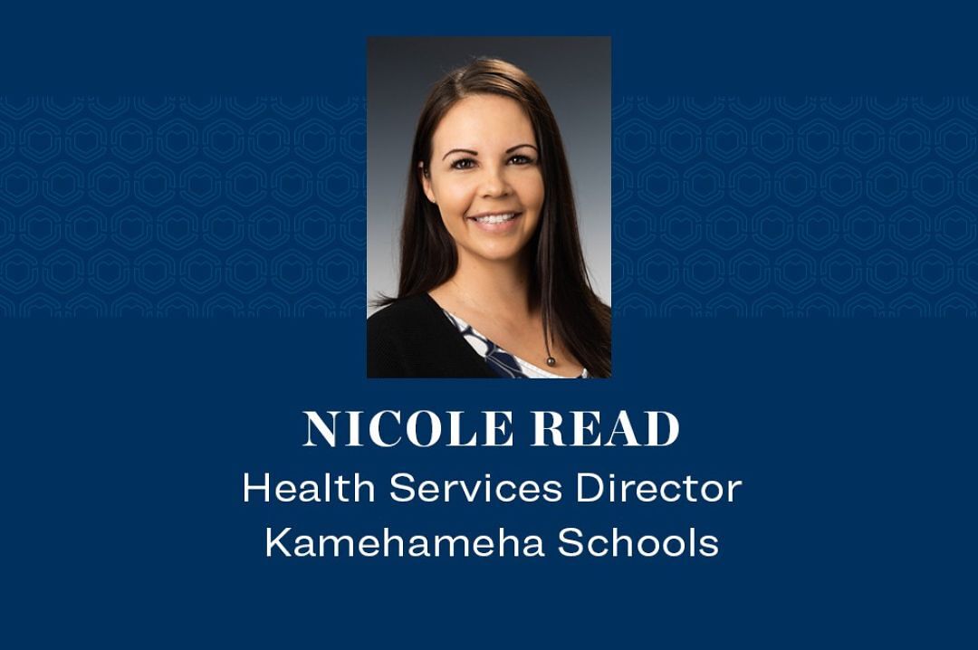 E ho‘omaika‘i to Nicole Read who was recently named Health Services director for Kamehameha Schools. Prior to her new post, Read was interim director and Health Services manager at Hale Ola at KS Kapālama.