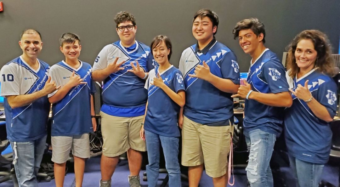 Team members are senior Elijah Scovel, juniors Chadwick Guerrero, Dylan Rosehill, Lehua Yoshida, and freshman Rion Chong. The e-sports program is coordinated and coached by electronic media arts kumu Nader Shehata and coach Auliʻi Nahulu.