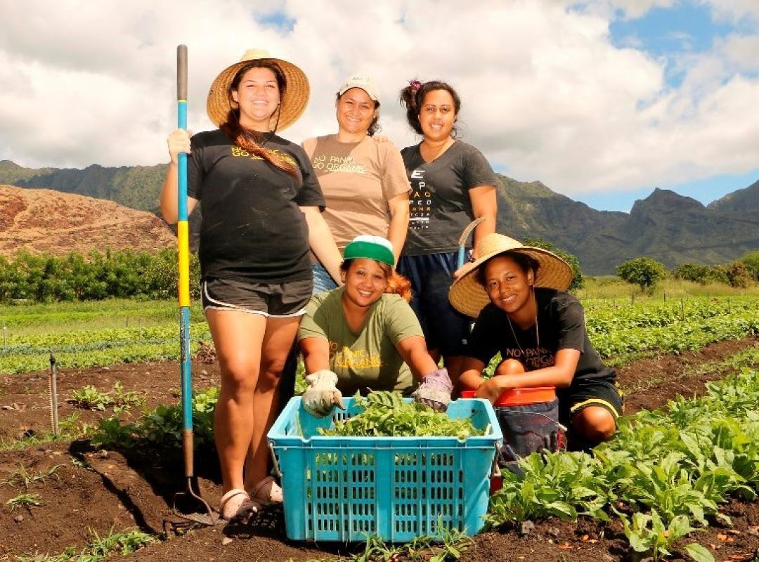 The founders of MAʻO Organic Farms are among the inaugural cohort of the KS-sponsored Hawaiʻi Investment Ready program. MAʻO used $75,000 in investment capital from the program to expand its organic farming operation and education programs for Waiʻanae Coast youths like the fledgling farmers above.