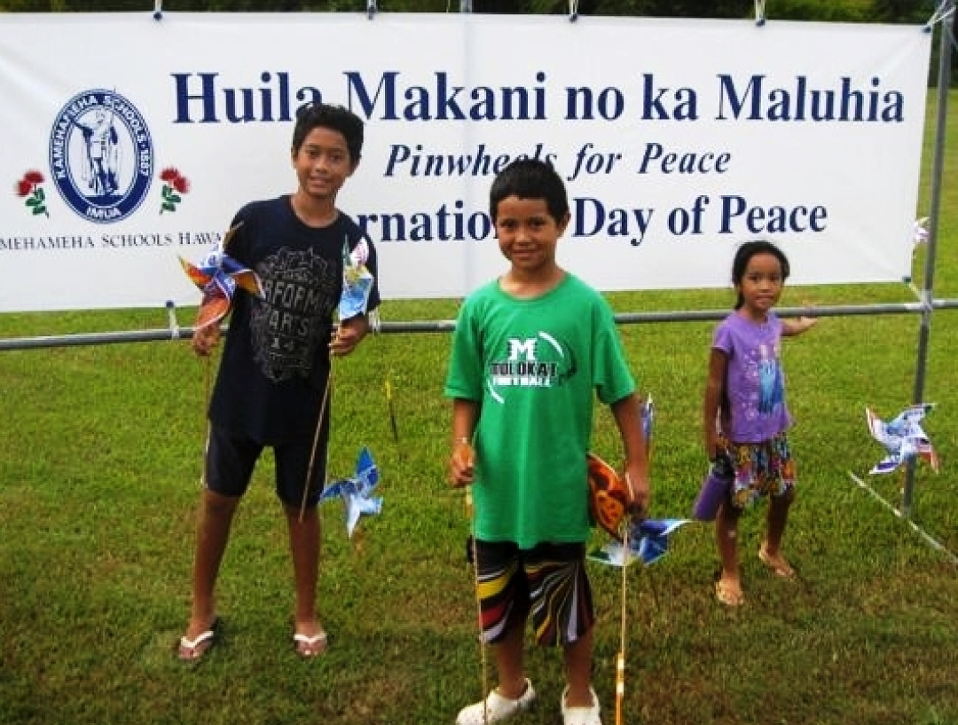 Each year, in September, kula ha‘aha‘a students at the KS Hawai‘i campus celebrate the International Day of Peace with the Pinwheels for Peace project.