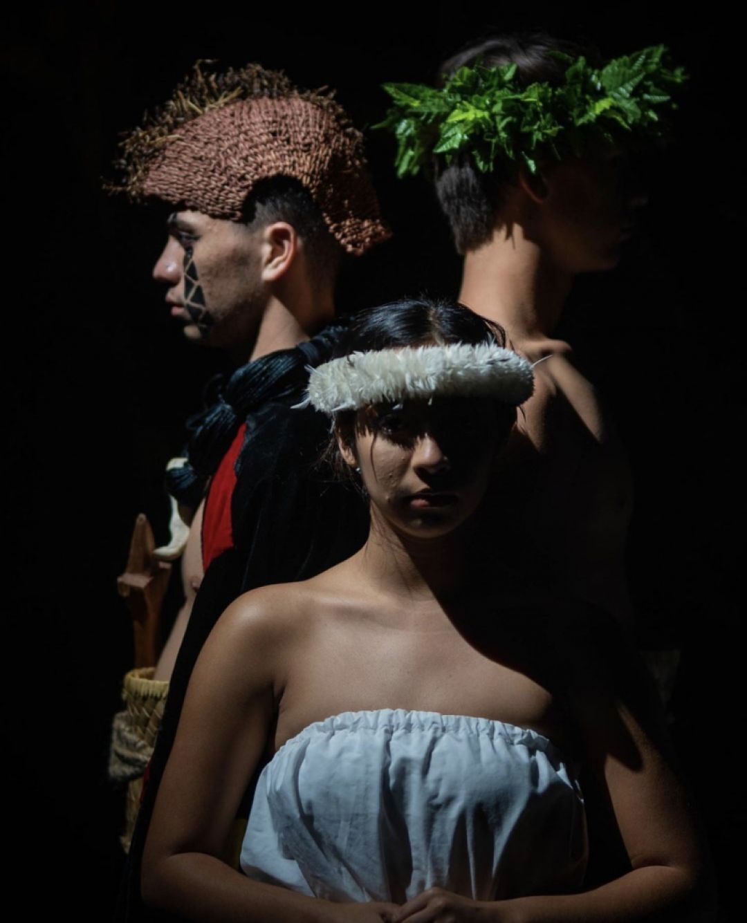 Seniors Aleah Kay (center) and Jason Aiwohi-Tomlin (left) and junior Kaiulu Tiogangco (right) star in ʻEleau.