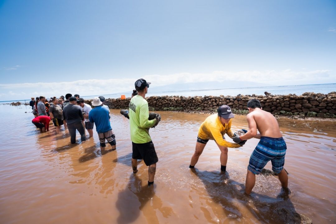 The restoration of Waia‘ōpae began in 2015 after aerial images revealed the underwater outline of the fishpond and indicated that the walls had fallen in. Under the direction of Lāna‘i Culture & Heritage Center Executive Director Kepā Maly and other cultural experts, the decision was made to rebuild the fish pond with original material.