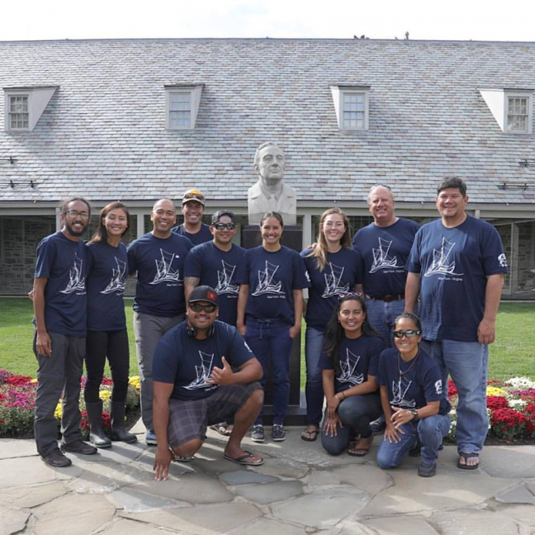 The leg 24 crew takes a moment at the Franklin Delano Roosevelt museum in New York for an educational engagement.