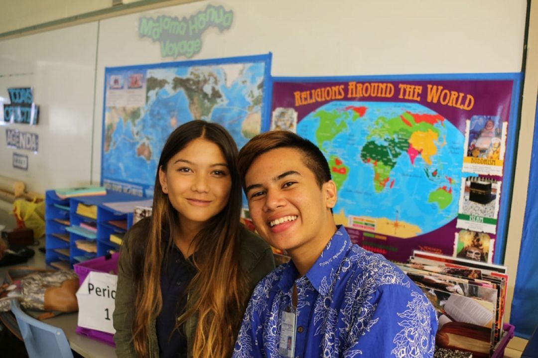 The traits question related back to a poster project students were working on, presenting traits they researched in historical figures. Between doing research on their own and being able to ask a Hawaiʻi group who has spent the past three years interacting with groups across the globe, they are able to hear how leadership and culture is perpetuated in other communities.