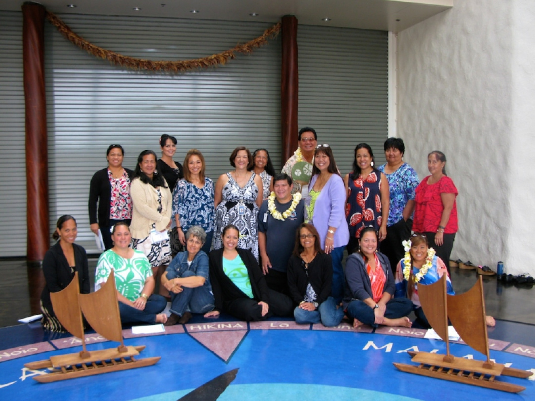 Darissa Kekuawela (ʻOhana/Community Coordinator), Malia Ellis (kumu at Waimānalo Preschool), Mark Ellis (Senior Project Manager at Hoʻokahua), Sallie Yoza (kumu at Kalihi-Pālama), and Annette Kaʻapana-Karratti (kumu at Keaukaha Preschool)