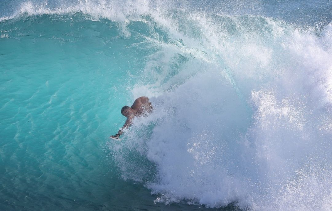 Usually, that would have been a good thing. However, there is no sandy shore at Panics, just an enormous seawall made up of large boulders that measured from four to six feet wide, creating a massive stone wall rising at least 10 feet from the surface of the sea. It was an ominous sight from our perspective, and we were desperate to get free from the grip of the surging ocean that kept sending waves our way causing us to continuously duck and hold our breath.