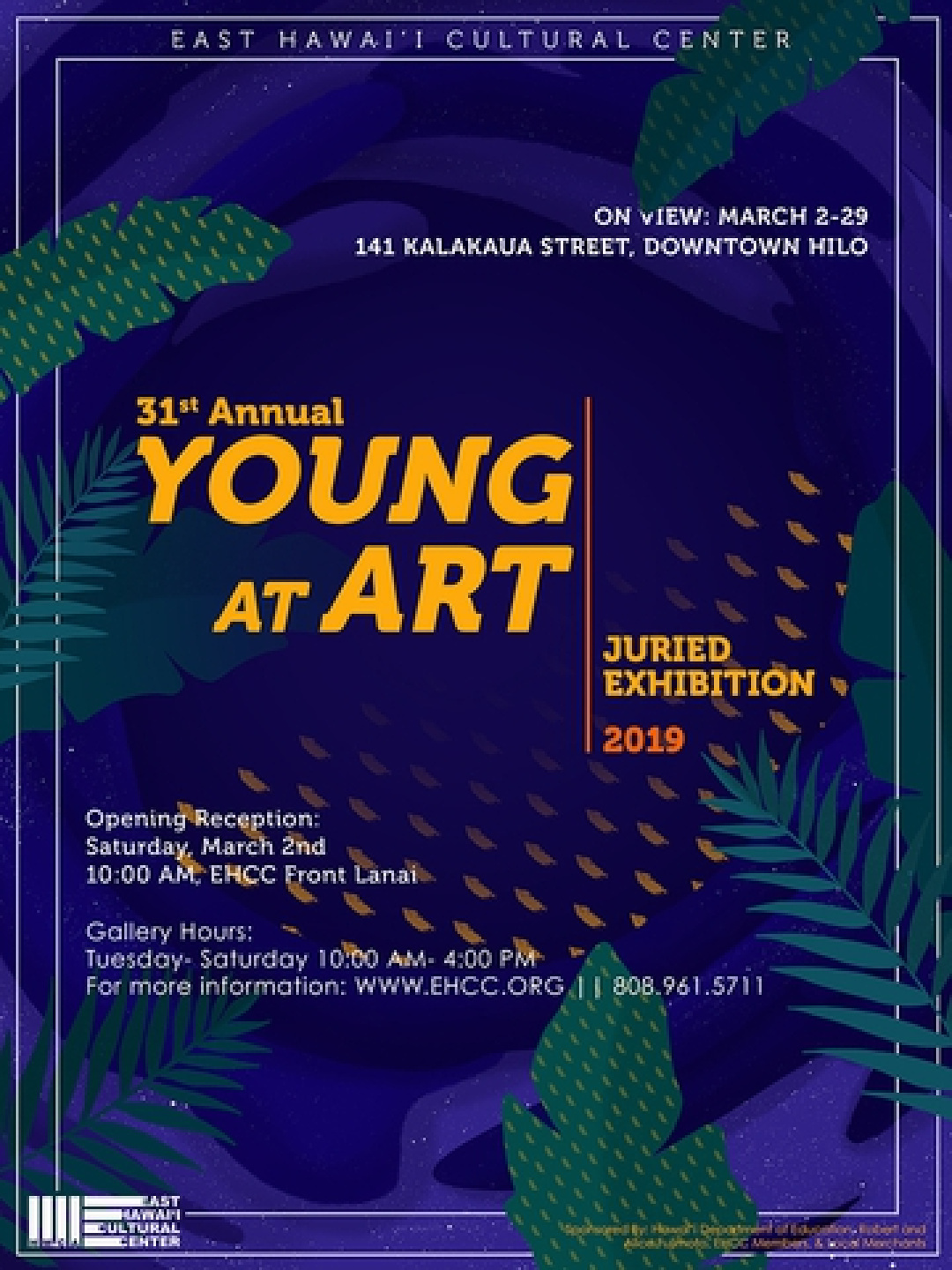 Next week Saturday, the East Hawaiʻi Cultural Center will open their 31st annual Young at Art show. Opening ceremonies will be held at 10 a.m. on the EHCC Front Lanai and the exhibit will be on display from March 2-29 from 10 a.m. to 4 p.m., Tuesday through Saturday.